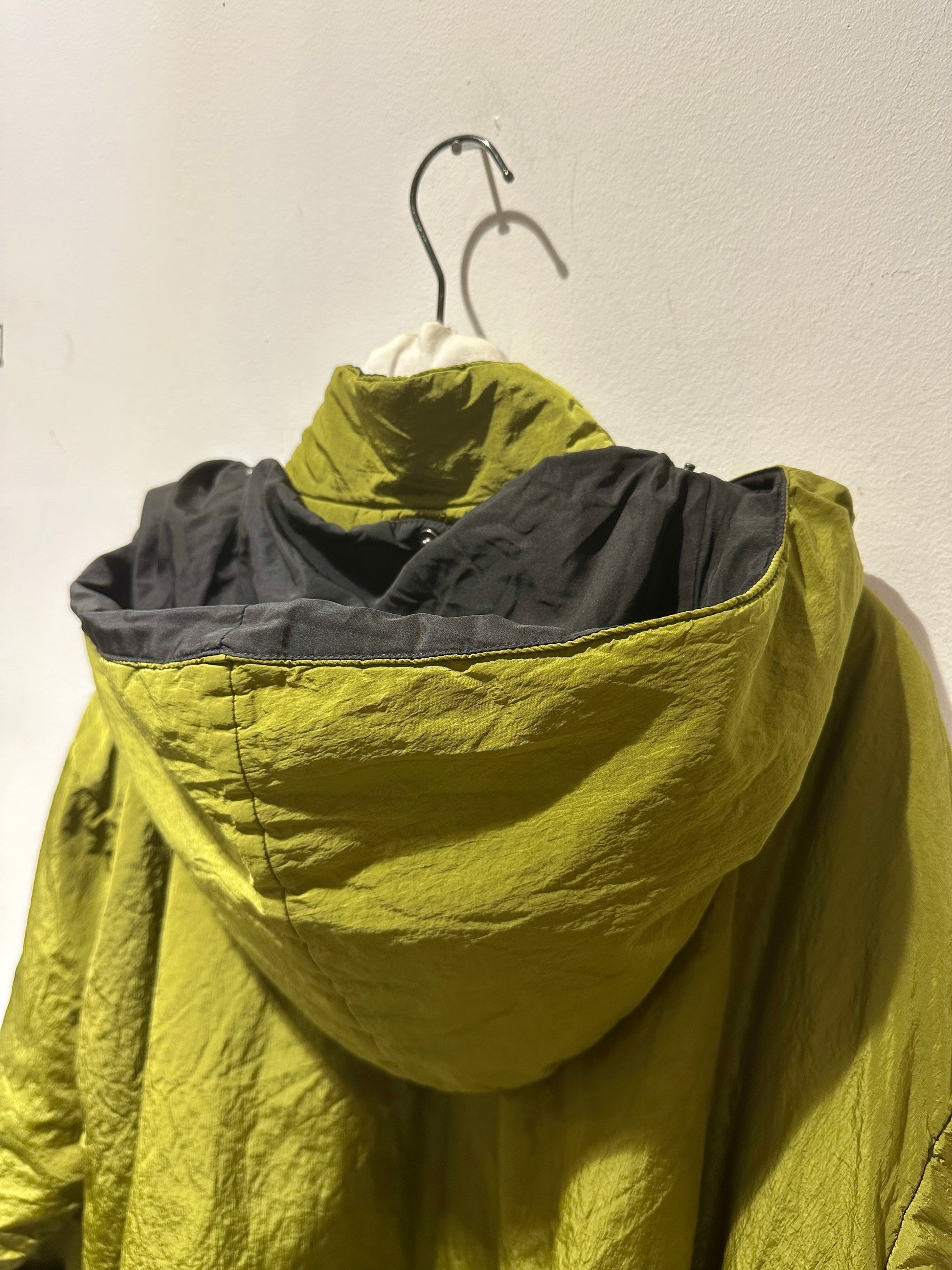 Presenta cappuccio staccabile, chiusura a zip a doppio cursore, due tasche applicate internamente, coulisse sul fondo per regolare la vestibilità e automatici sui polsi.