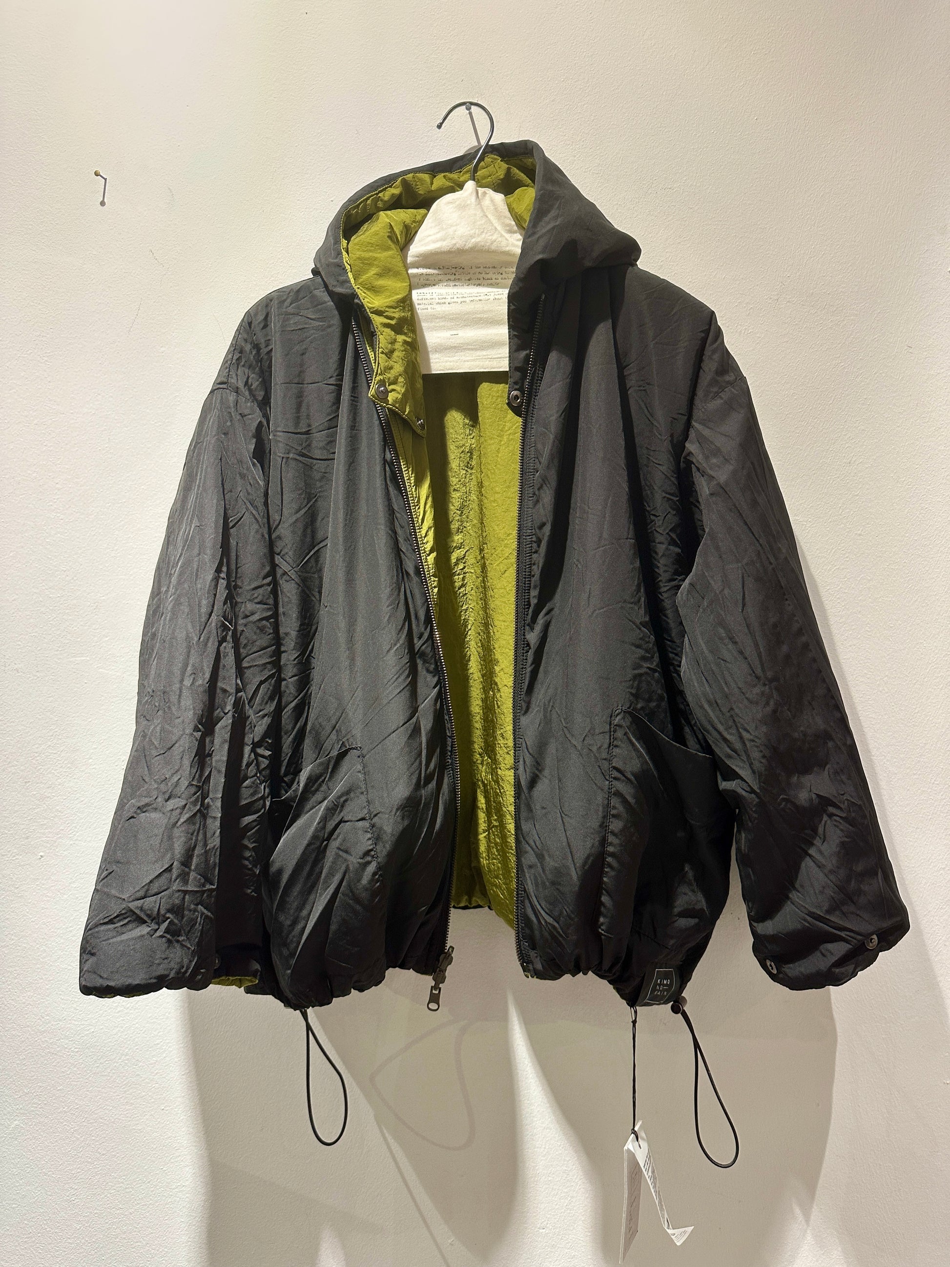 Piumino modello bomber dalla vestibilità oversize completamente reversibile.
