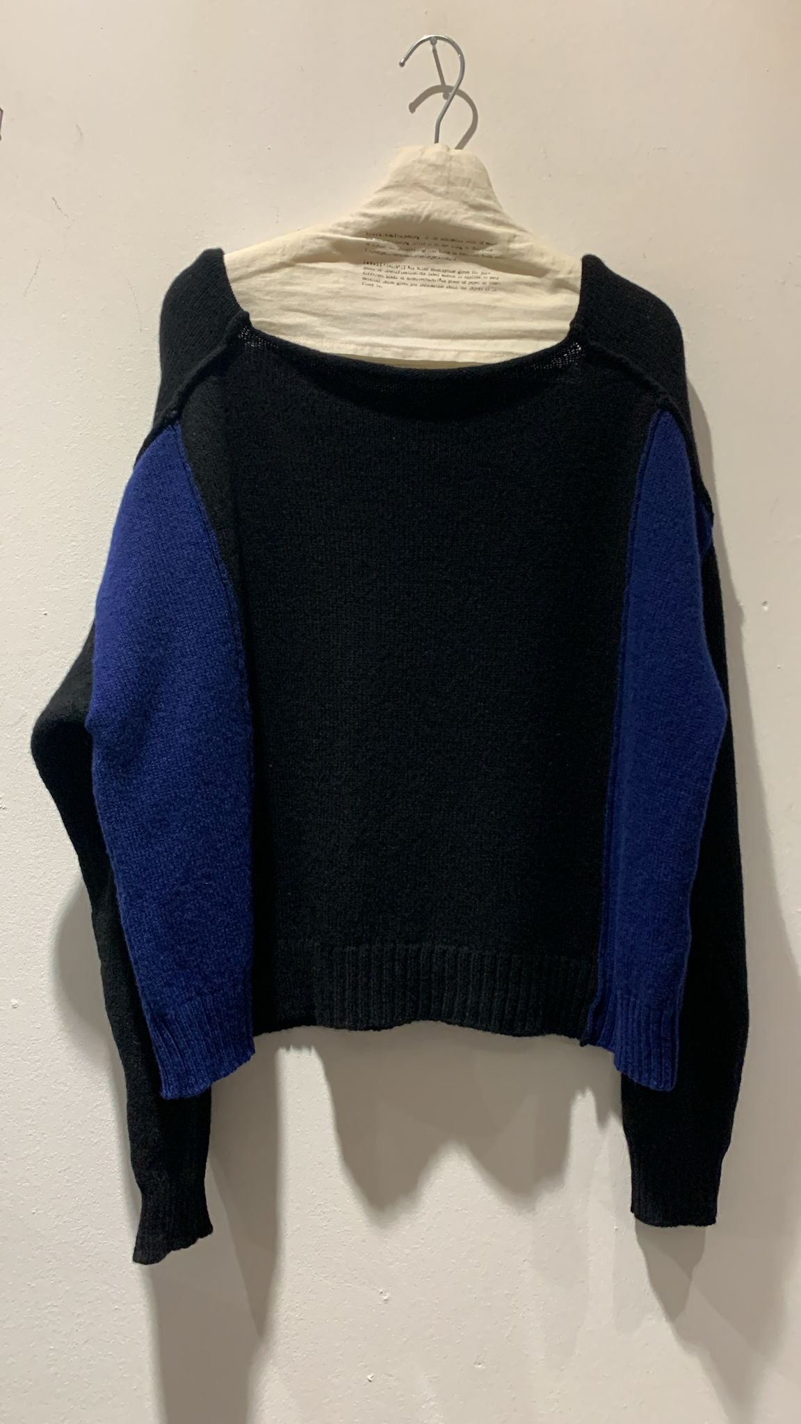 Scollo ampio, manica lunga, cuciture in rilievo e bordo a coste.