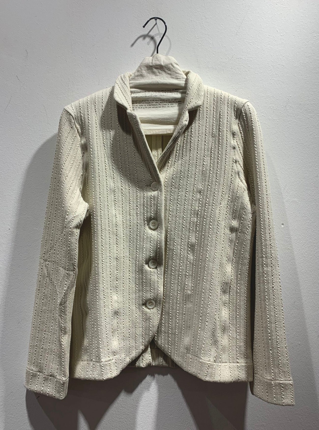 Giacca in cotone con dettagli in rilievo, scollo a V e chiusura a 4 bottoni.