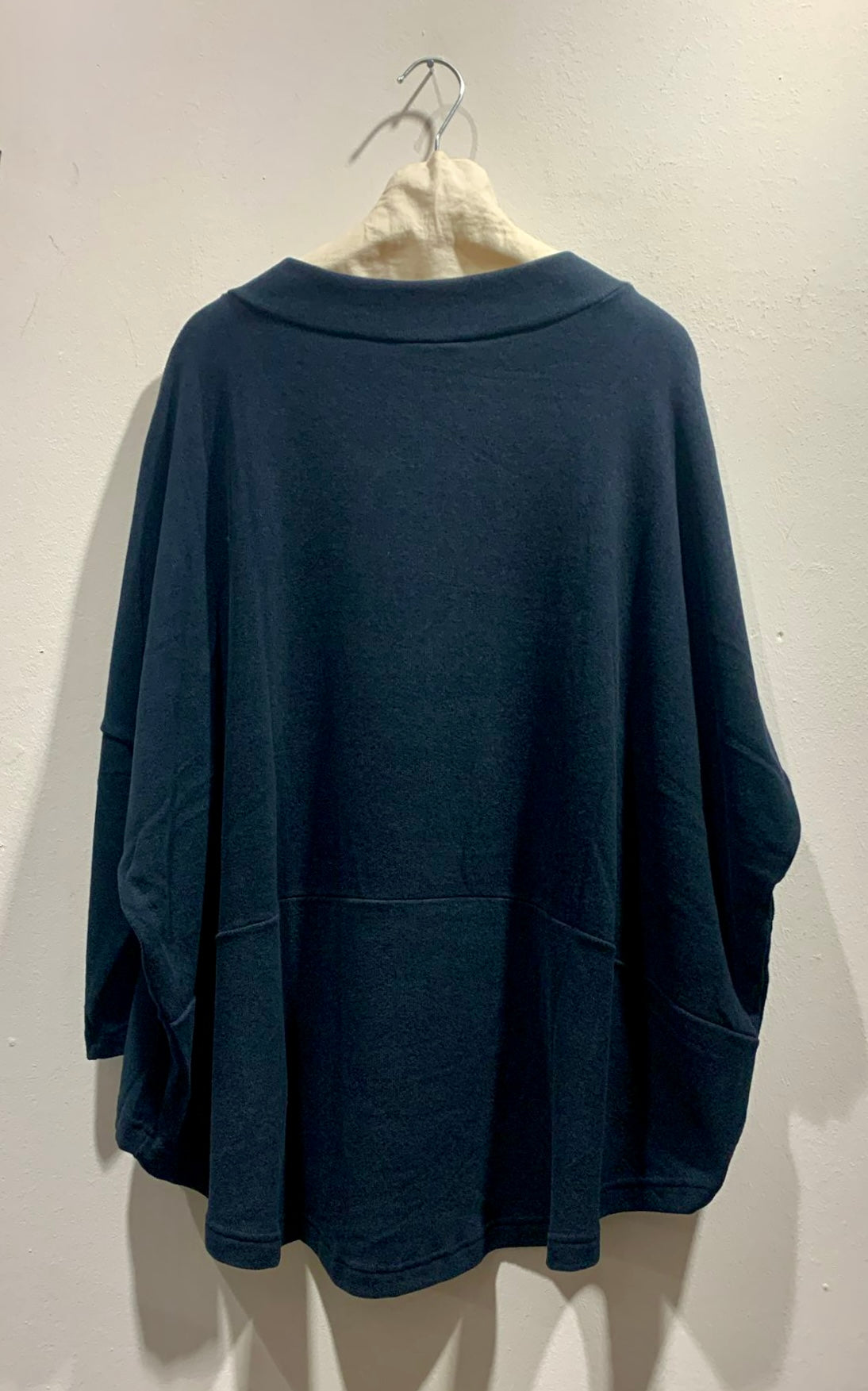 Maglia lunga in maglina di cotone caldo blu notte.