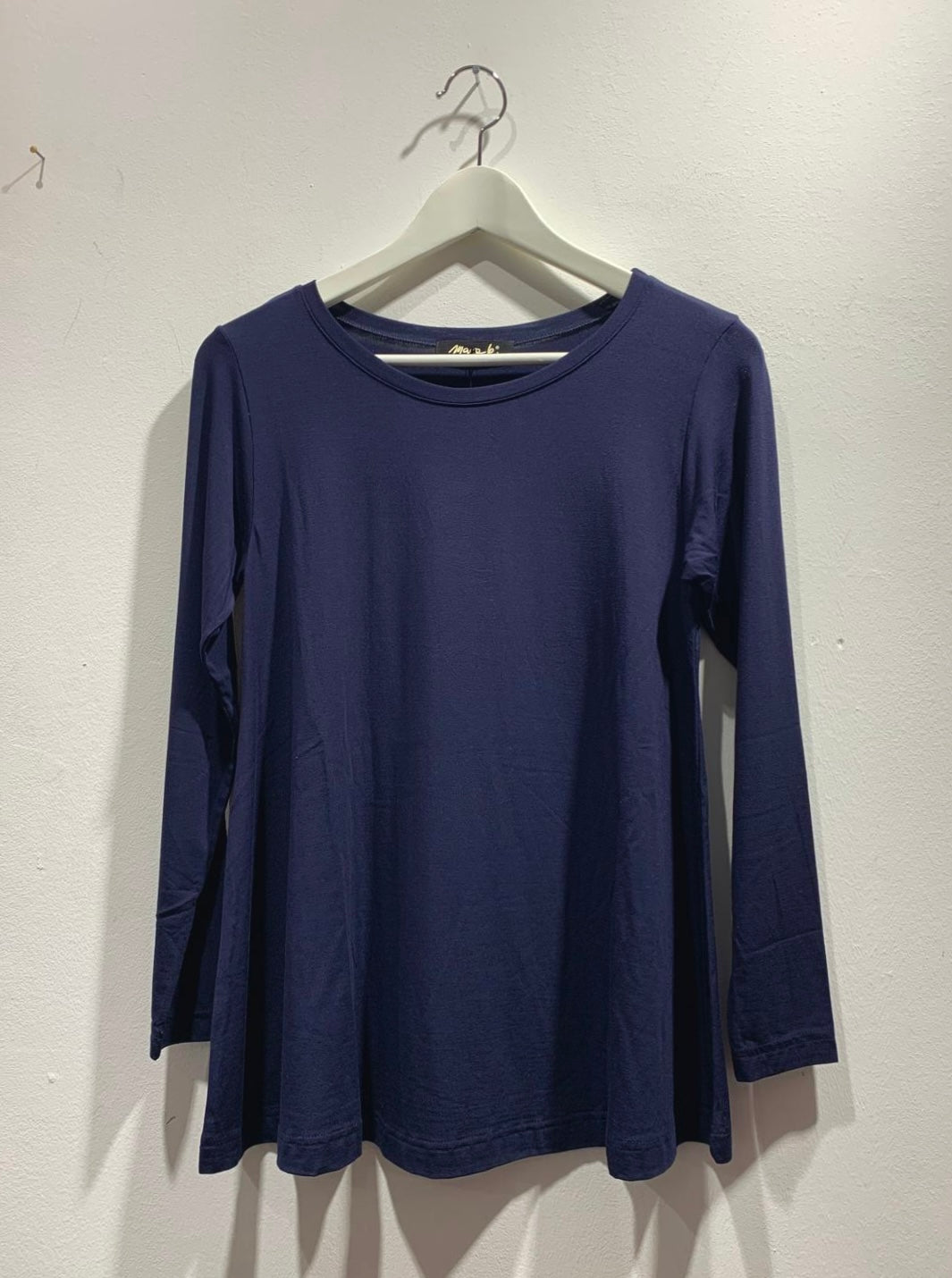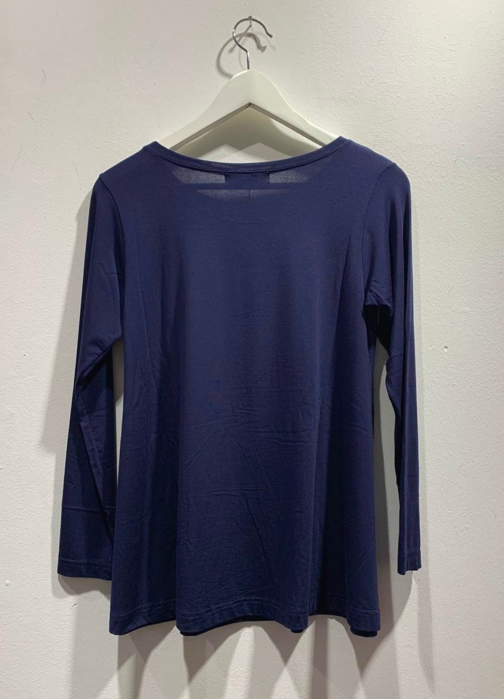 T-shirt semplice blu notte con manica lunga e scollo rotondo.