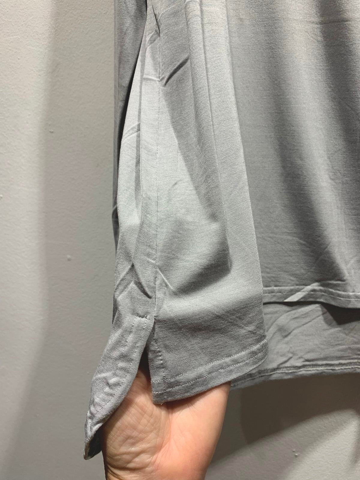 T-shirt morbida in micromodal con manica lunga, scollo rotondo, spacchetti laterali, leggermente più lunga dietro.
