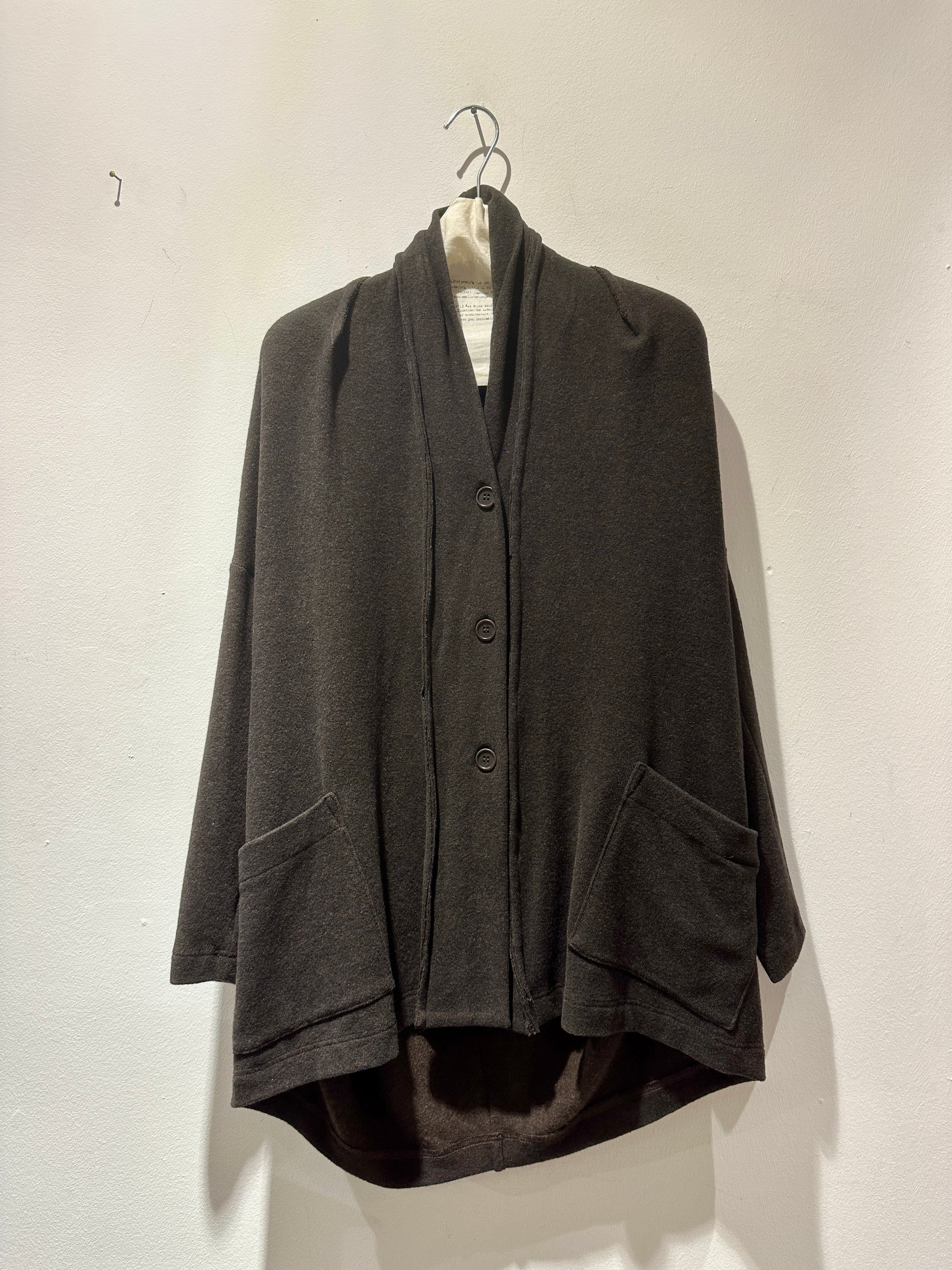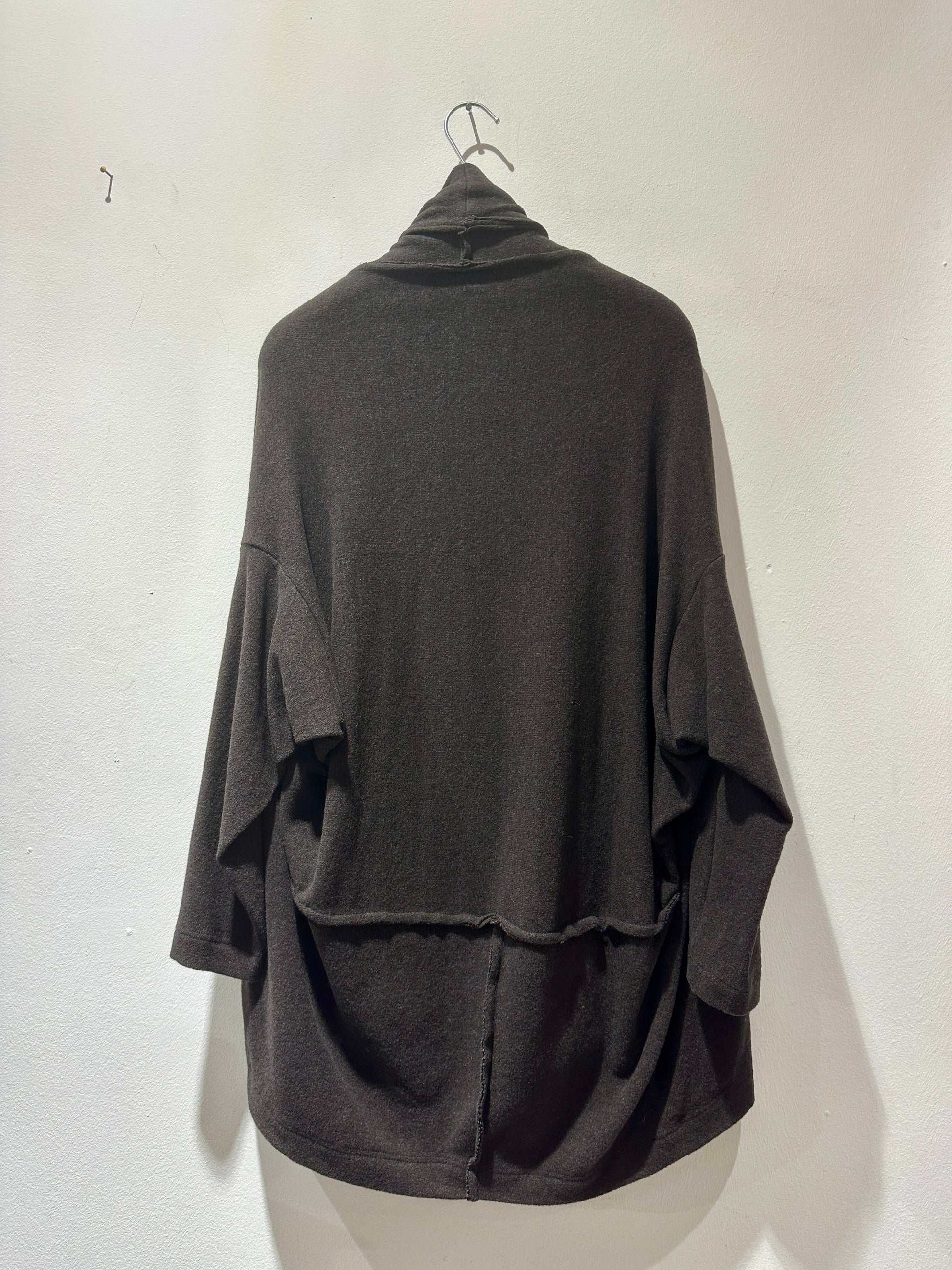 Cardigan in caldo cotone color moro dalla vestibilità ampia.