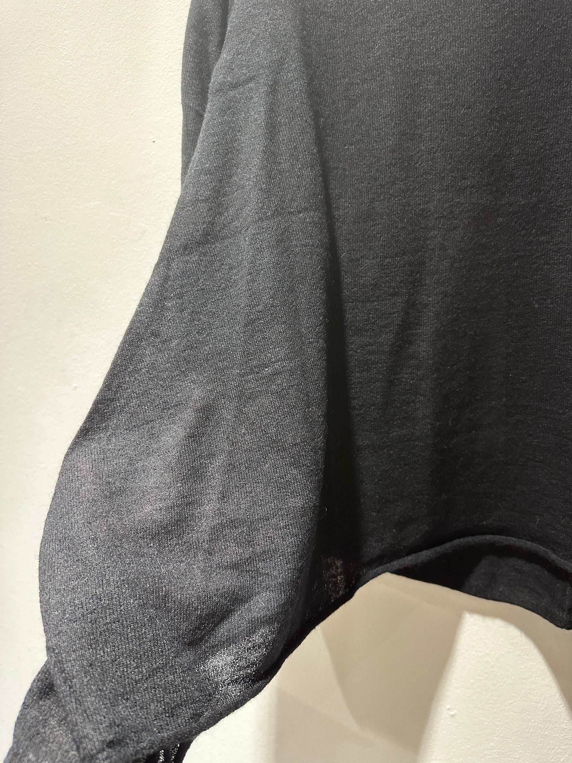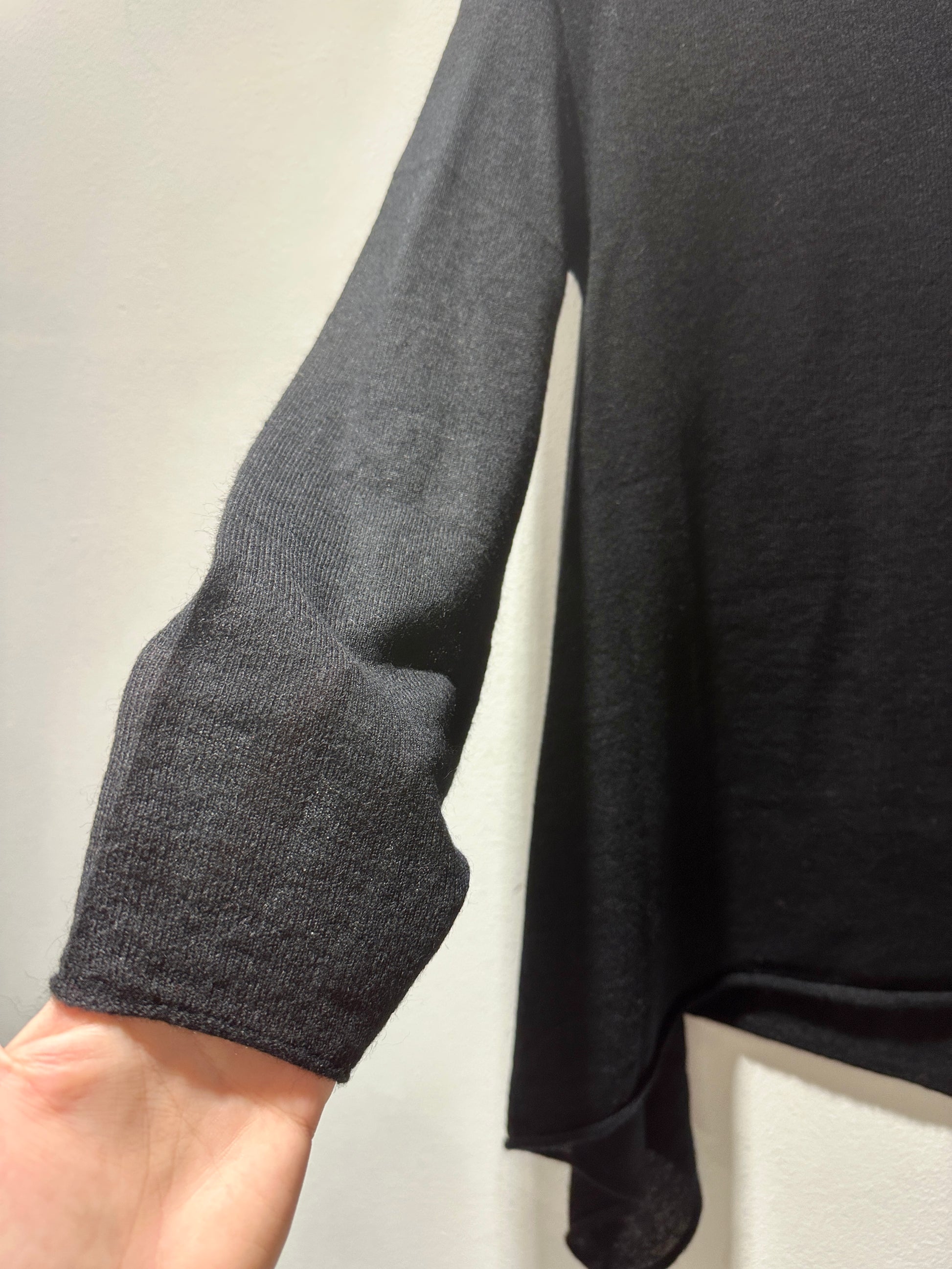 Maglia nera svasata misto lana e alpaca con punte laterali e scollo rotondo.