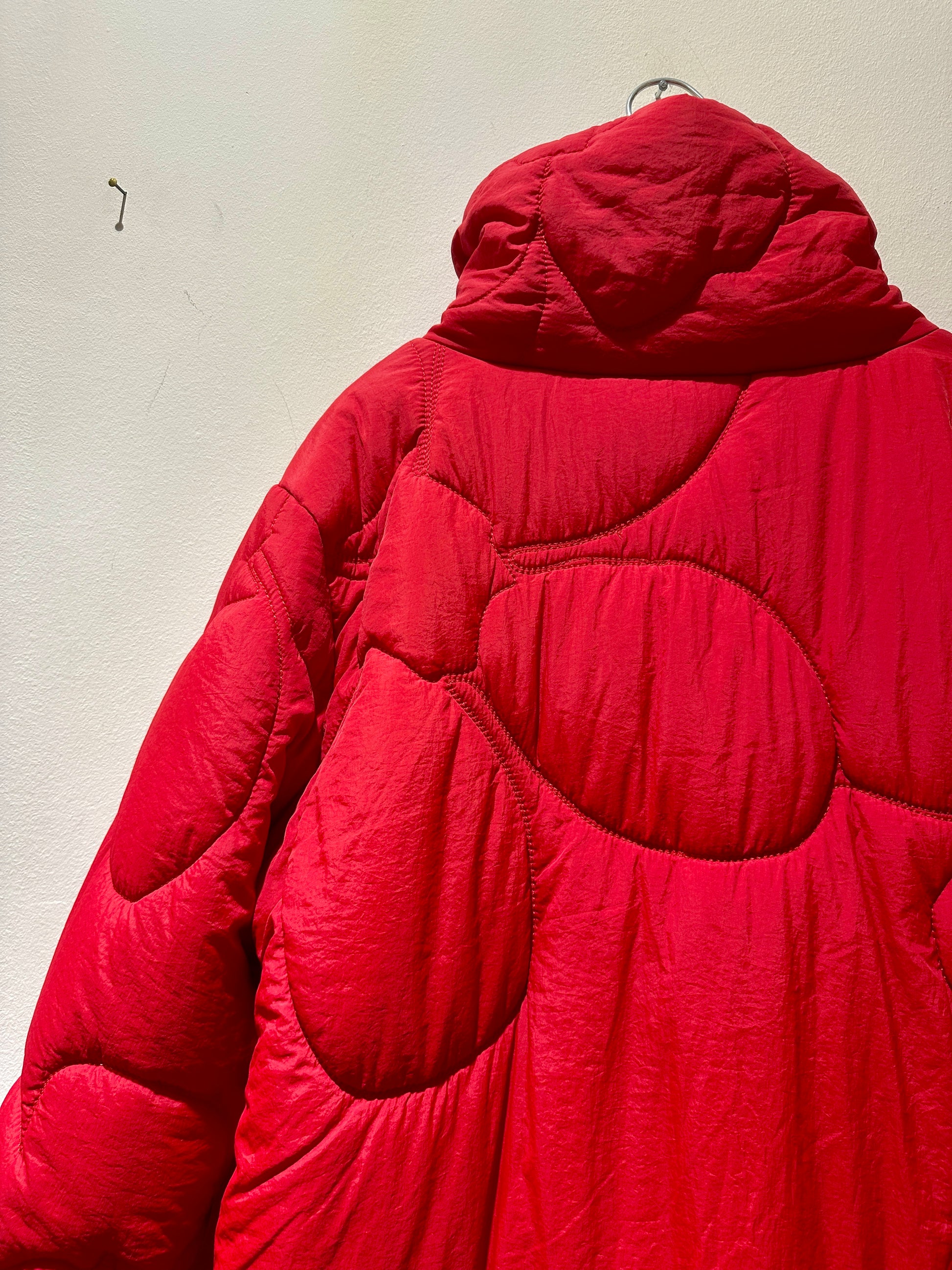 Piumino imbottito rosso dal taglio over e con vestibilità molto ampia.