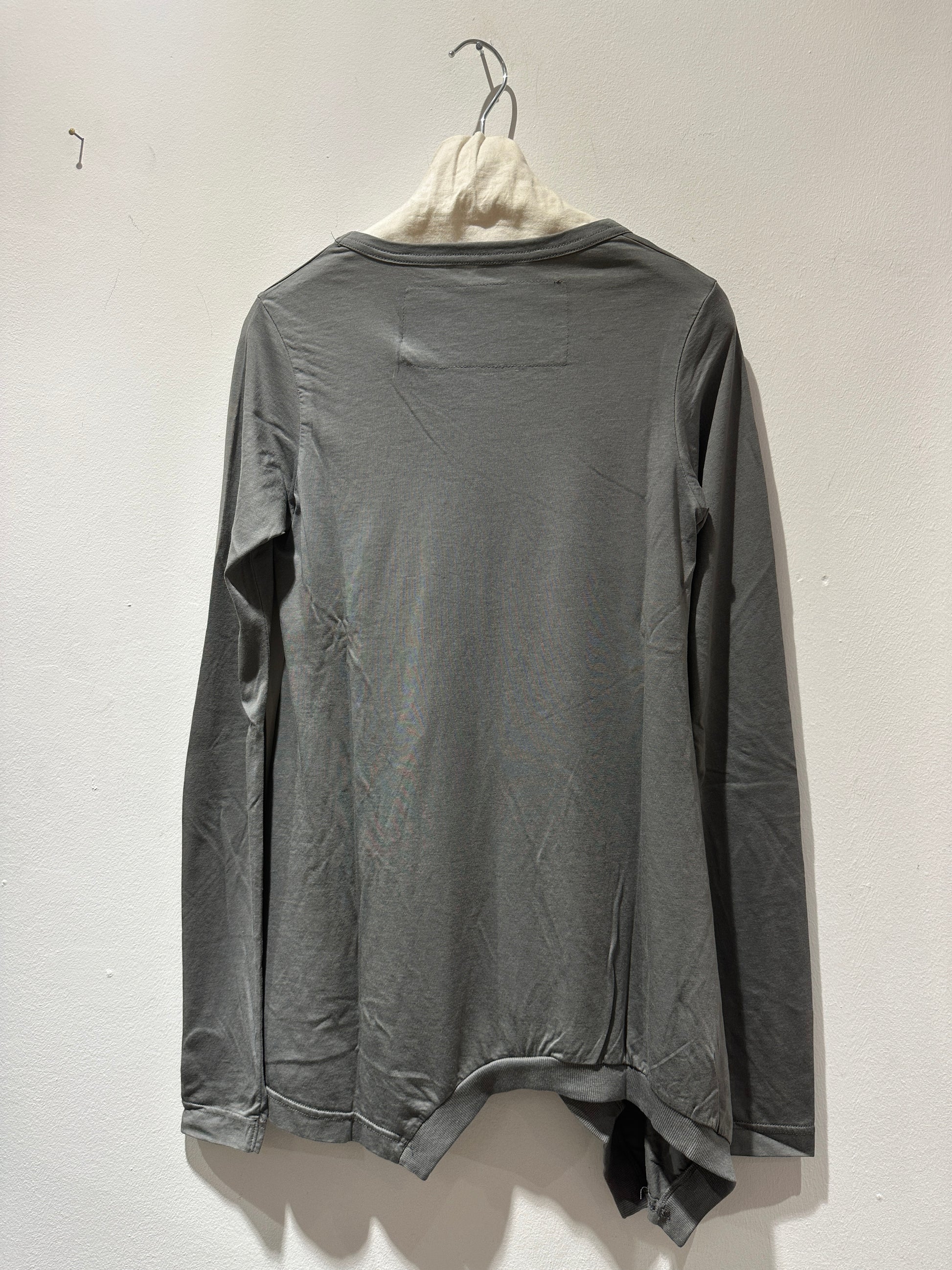 T-shirt grigida svasata misto lyocell e cotone con manica lunga, scollo rotondo e svasata sul fondo.
