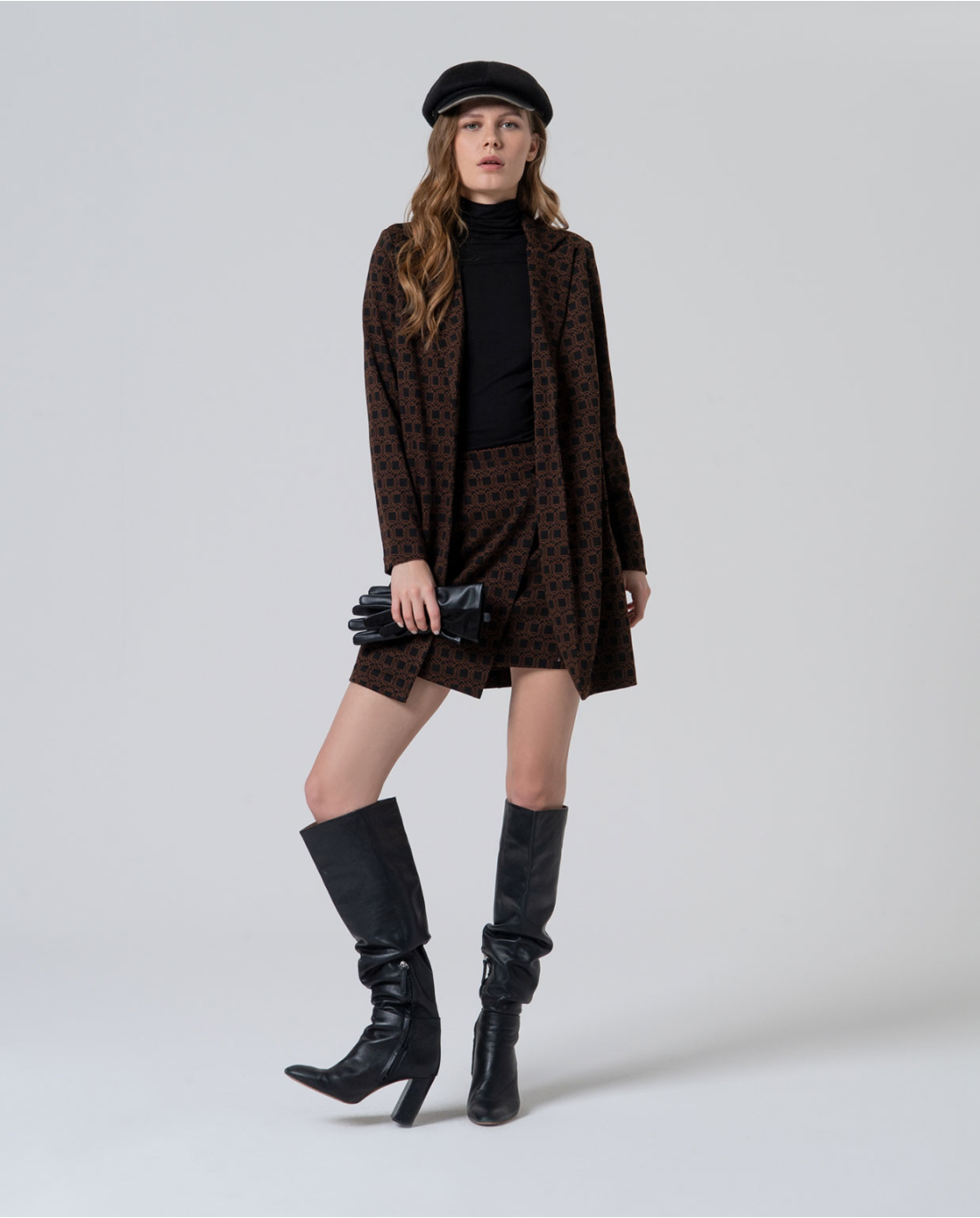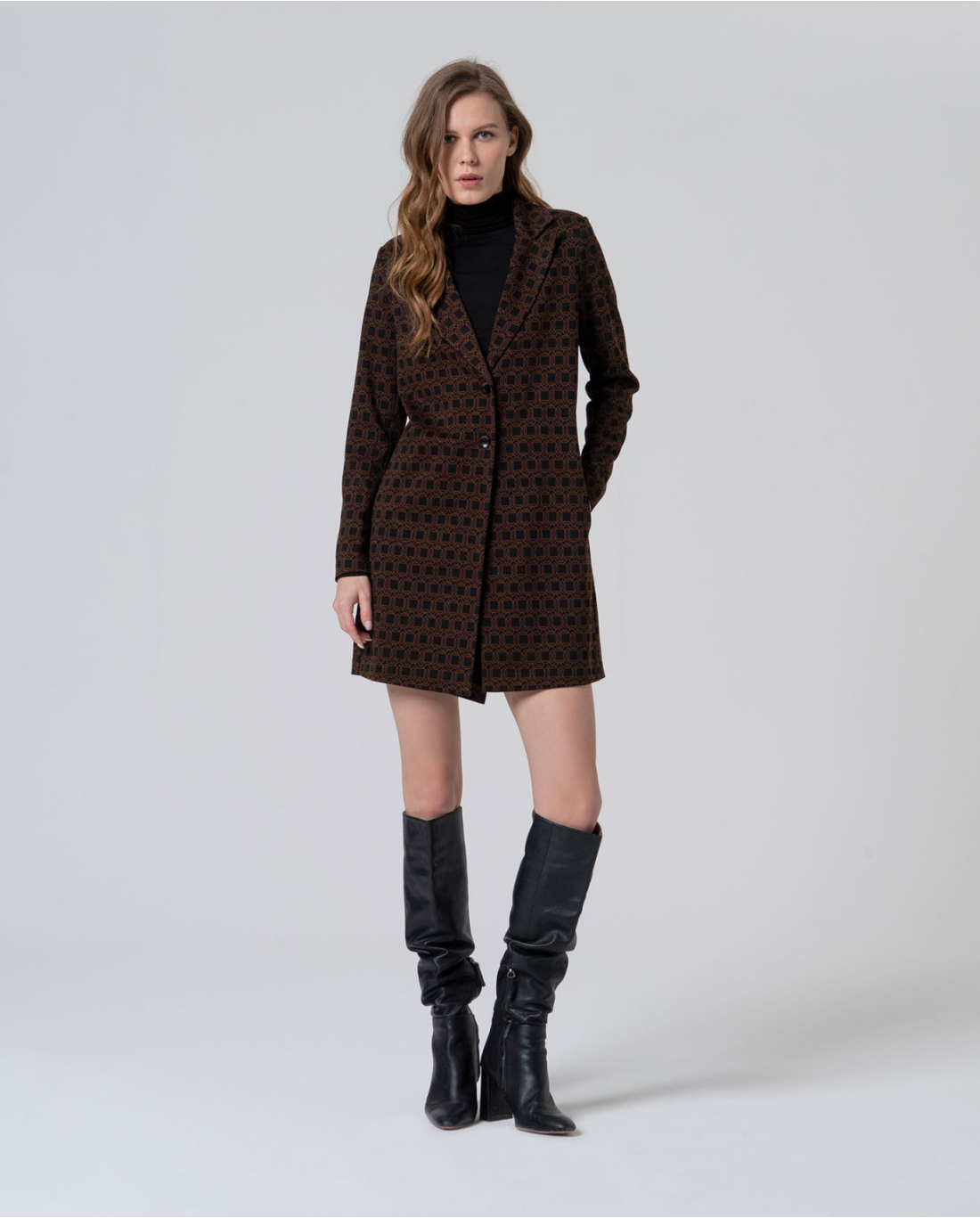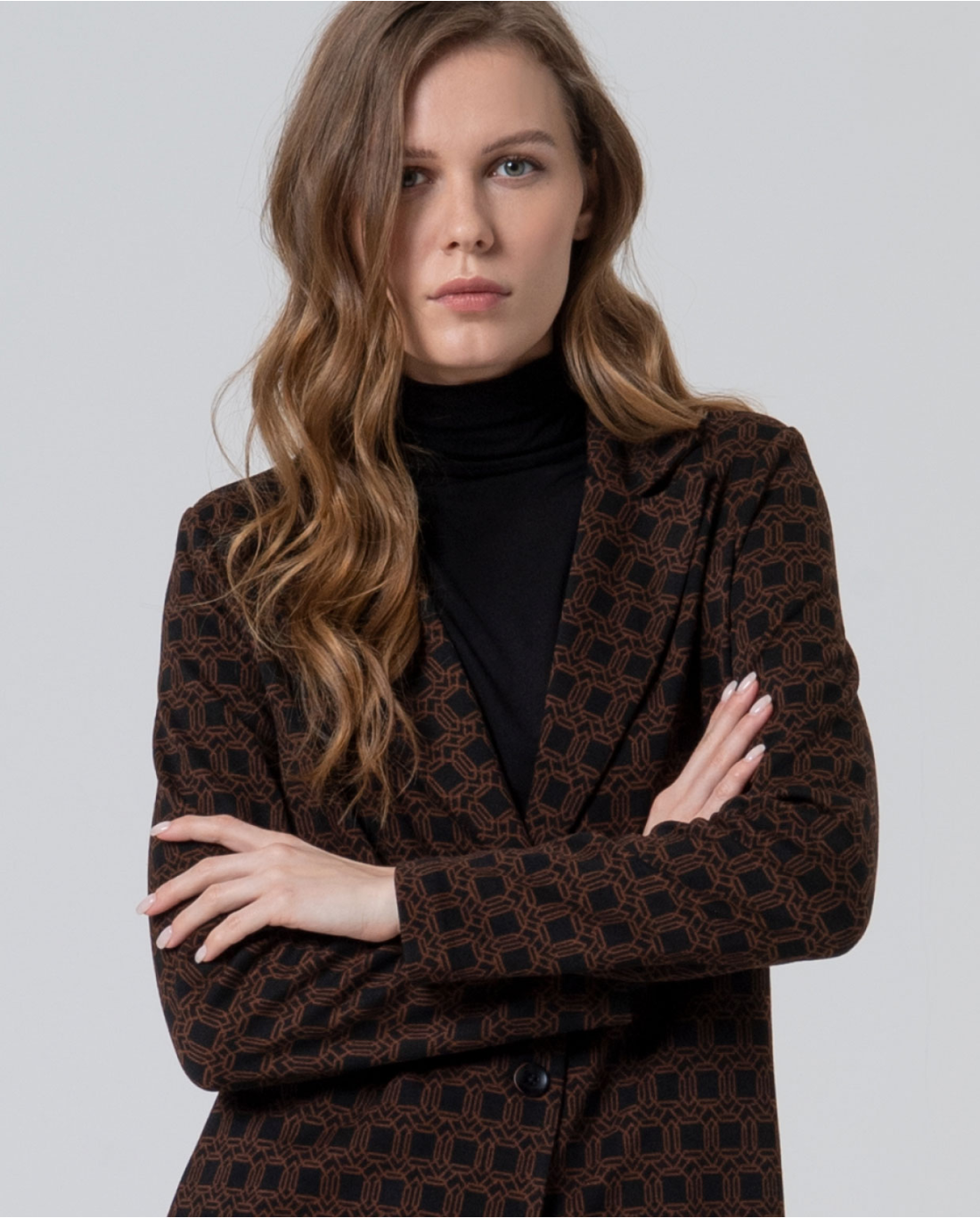 Blazer lungo con scollo a V e chiusura a 1 bottone realizzata in tessuto elastico e morbido al tatto. La sua originale stampa geometrica aggiunge personalità e un'aria contemporanea a qualsiasi outfit.