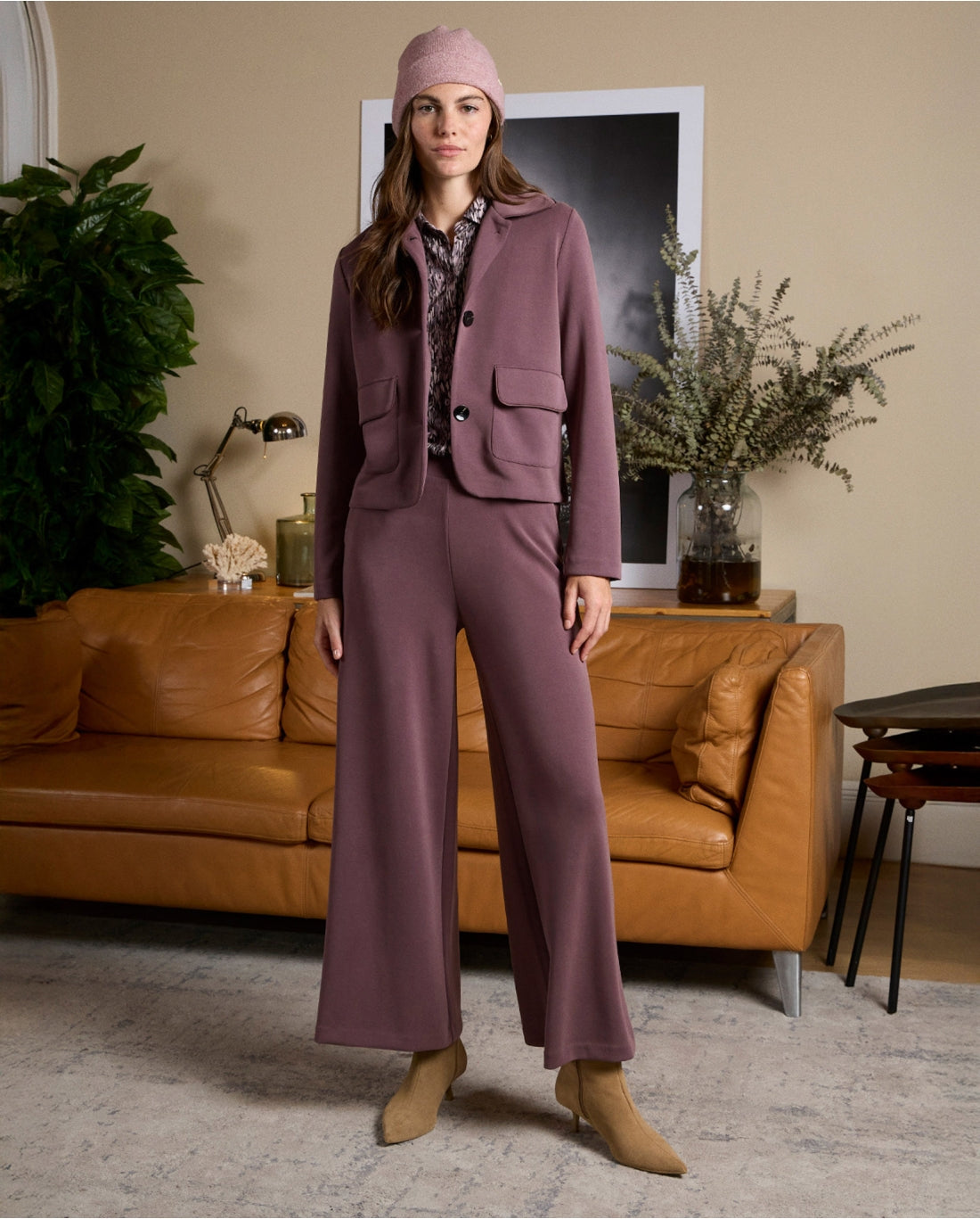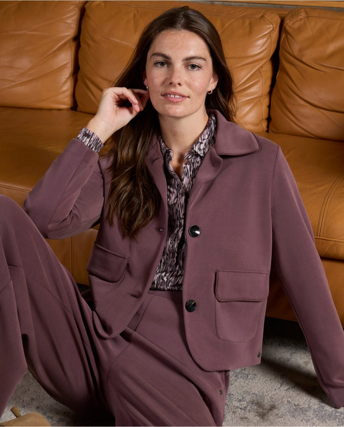 Giacca corta realizzata in modal spesso, tessuto extra elastico e morbido, con colletto classico e tasche frontali. Questo capo unisce struttura e comfort in un capo versatile che si adatta con stile alla tua routine quotidiana.