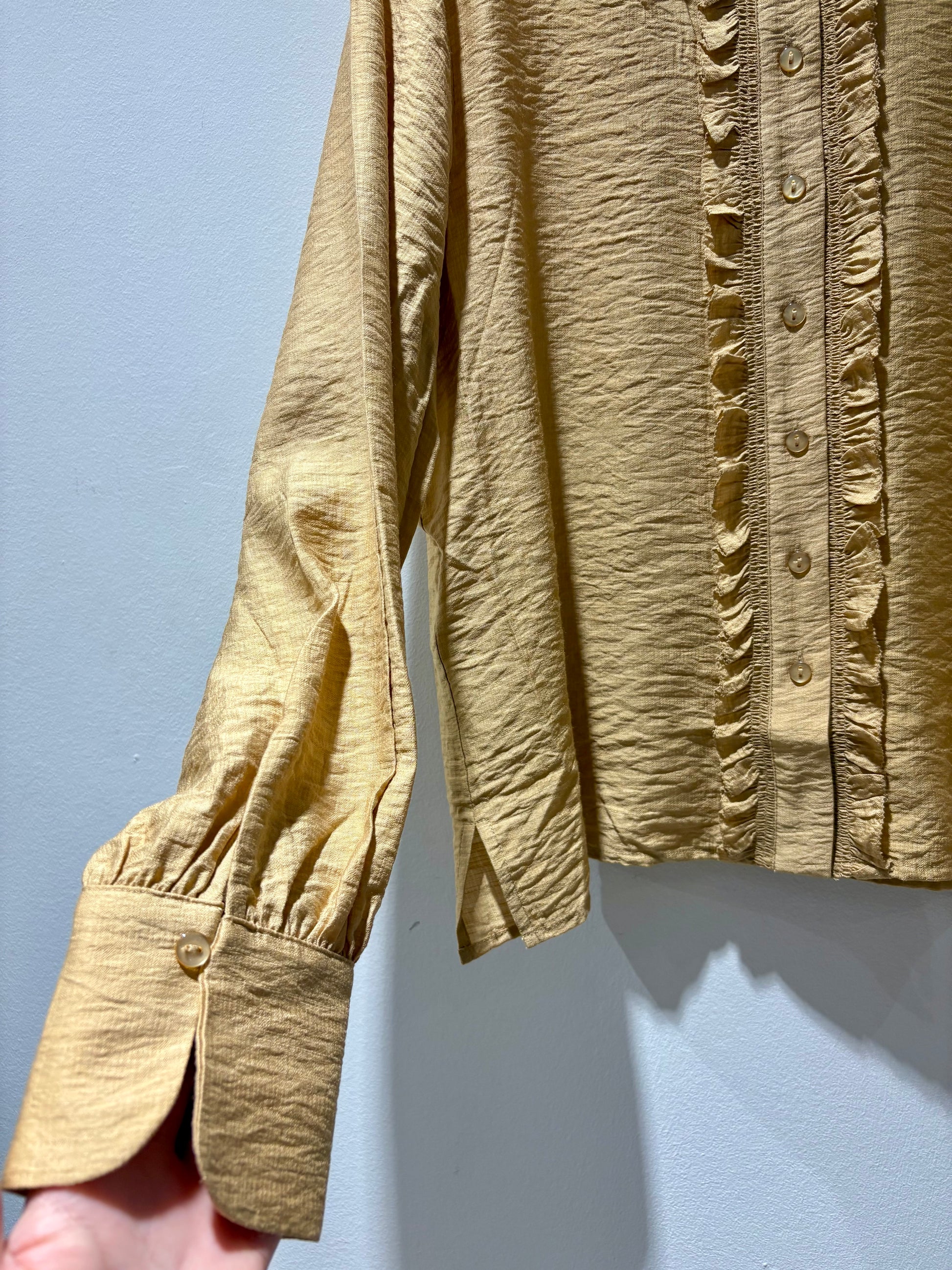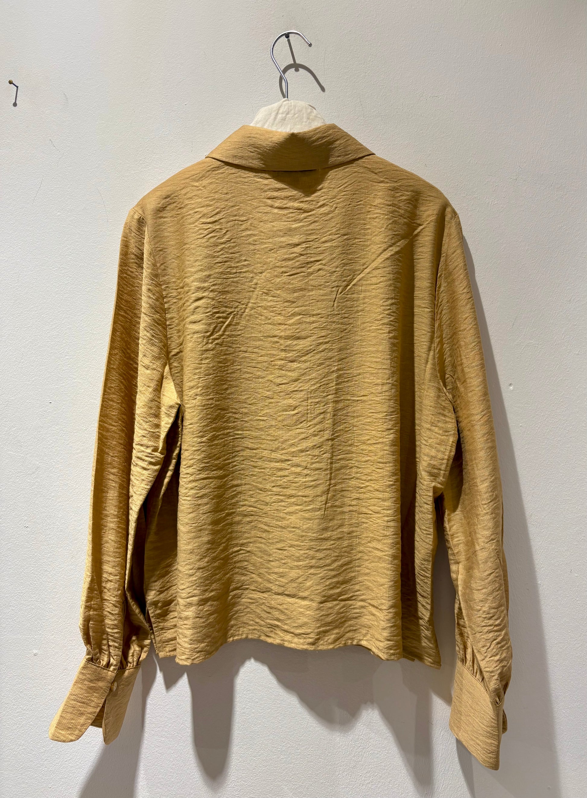 Camicia a maniche lunghe realizzata in un tessuto morbido con corpo in raso, che conferisce eleganza e movimento. Si distingue per il design con profili sul davanti e il classico colletto da camicia. Un capo dall'aria romantica e molto femminile.
