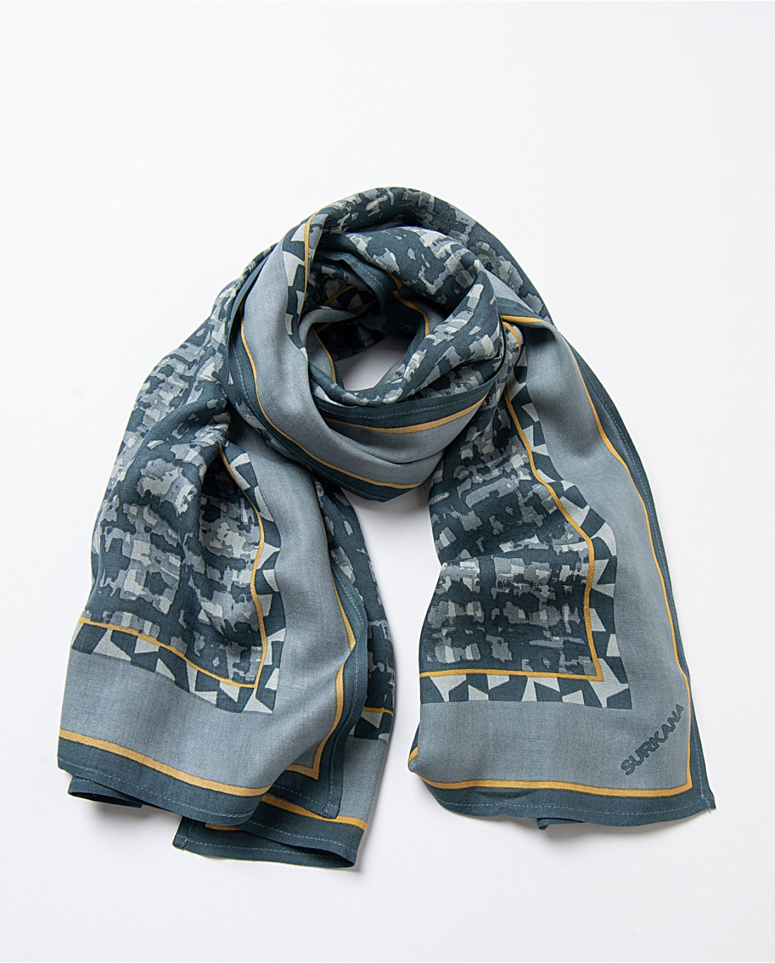 SURKANA - Sciarpa in viscosa fantasia, Blu Petrolio