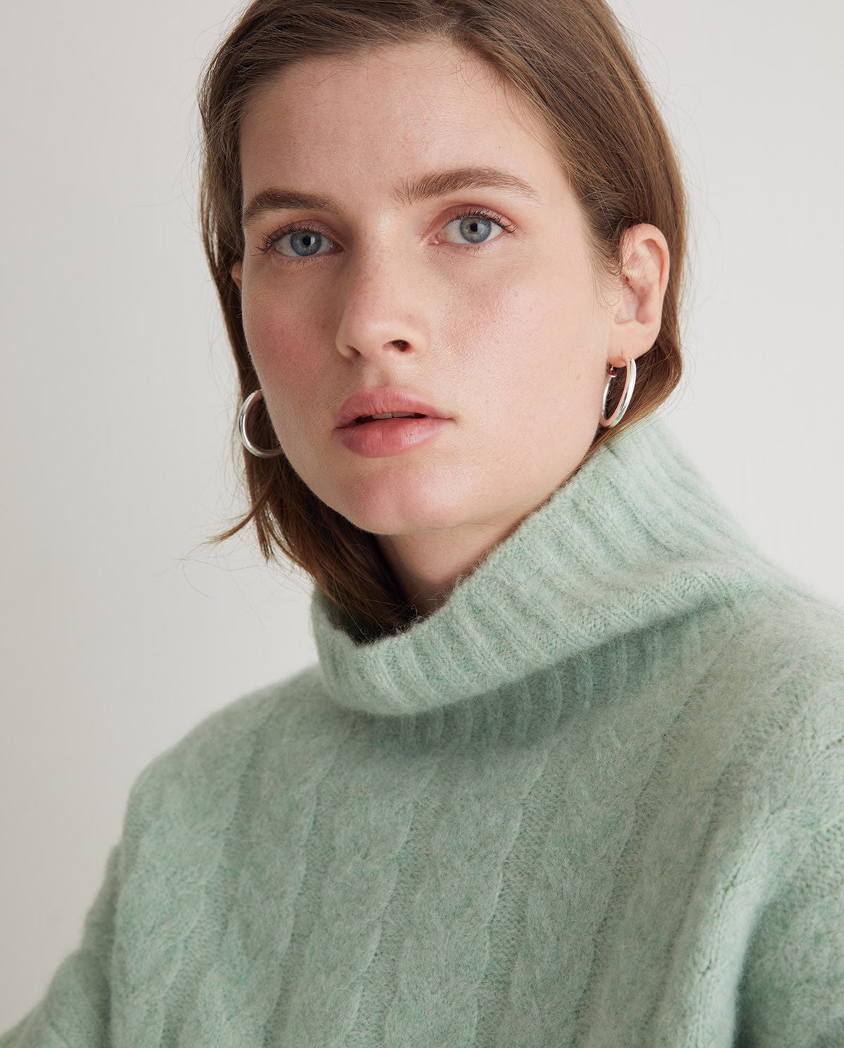 YERSE - Dolcevita trecce misto lana, Verde Chiaro
